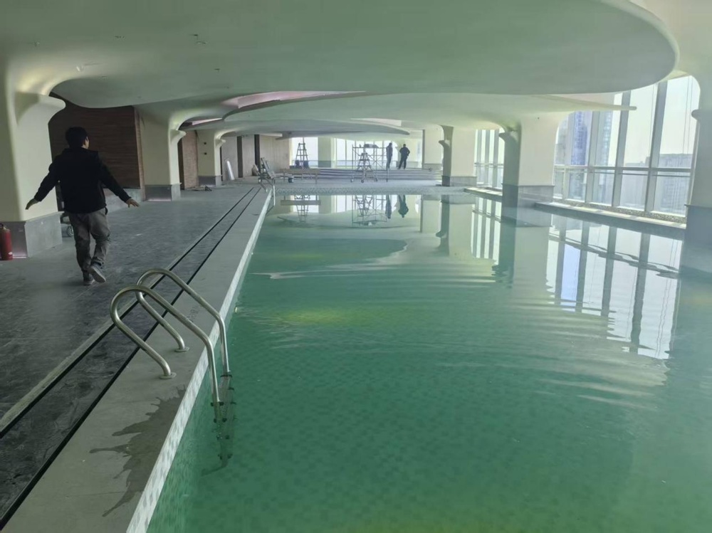 تتبع نفس التصميم الجمالي الشرقي، وتتميز منطقة المسبح بنوافذ بانورامية كاملة الجدار ممتدة من الأرض حتى السقف مع إطلالات مباشرة على نهر شيانغجيانغ وجزيرة أورانج. وفي الليل، يمكن للضيوف الاستمتاع بأضواء المدينة والألعاب النارية فوق جزيرة أورانج، مما يجعلها واحدة من مواقع التصوير الشهيرة في الفندق.